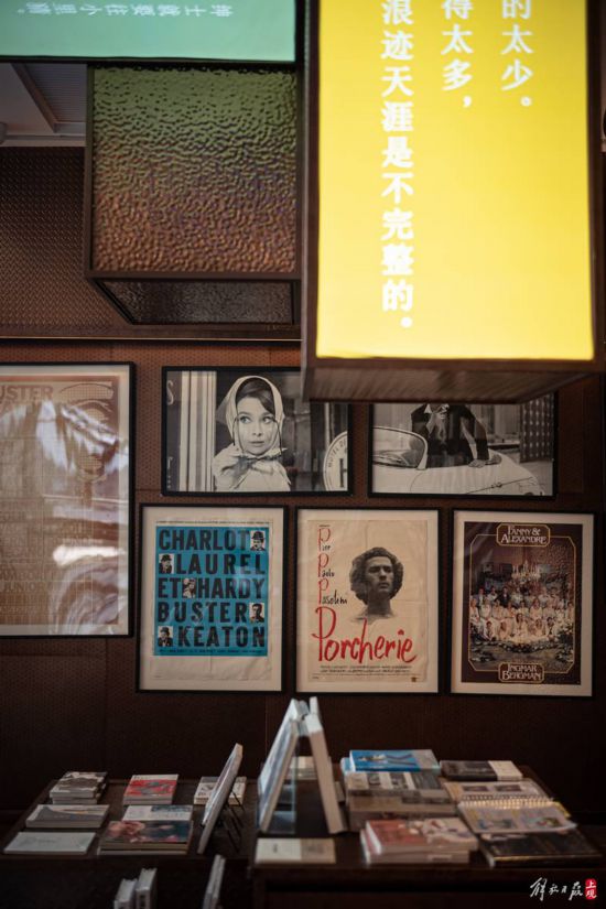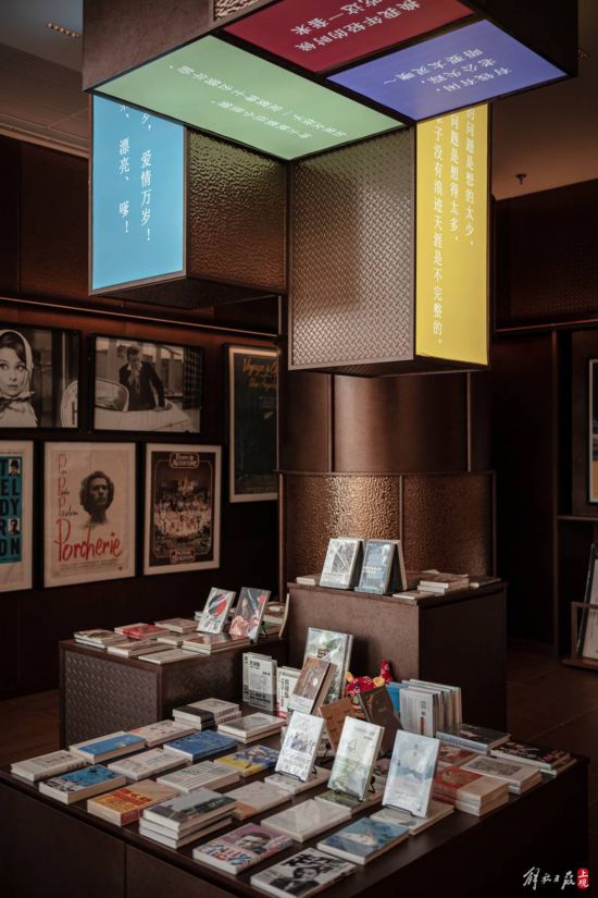 書店內的陳設處處有電影的影子,也有反映在地電影文化的巧思。書籍陳列架上的立體裝飾印著電影《愛情神話》里的俏皮臺詞。