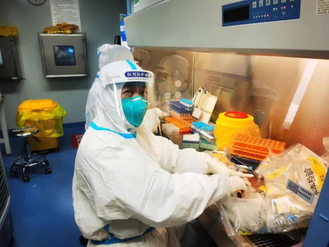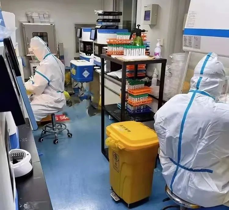 為確保核酸檢測報告在4—6小時內準確發出,檢驗科實行三班輪崗制。每天,隨著新一批核酸檢測樣本送入實驗室,成員們便利索地換好防護服,迅速投入工作。因為必須身著三級防護裝備,一次檢測做下來,早就渾身大汗,衣服濕透。部分成員因此引發了過敏,卻仍然堅持在崗,只為了盡可能縮短結果報告時間,與新冠病毒“賽跑”。