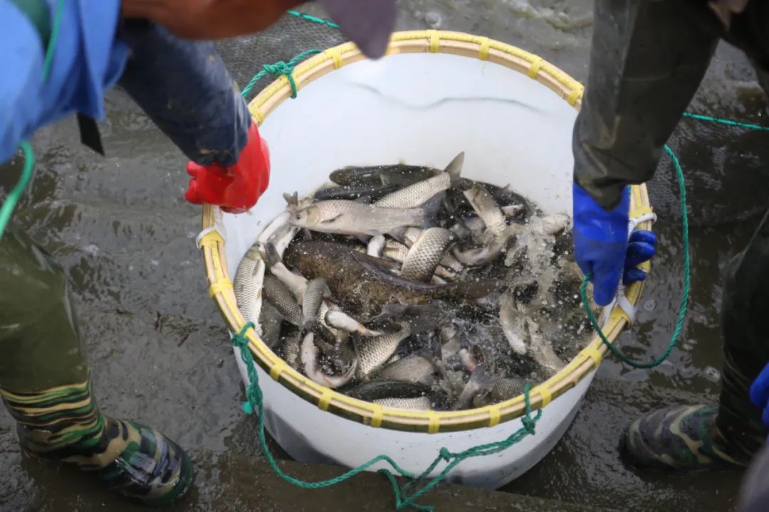 上午,記者在上海市大裕水產養殖場看到,隨著工人收緊漁網,一筐筐活蹦亂跳的魚苗被裝入水產運輸車輛。隨后,首批魚苗被放入鹽鐵塘相關流域。
