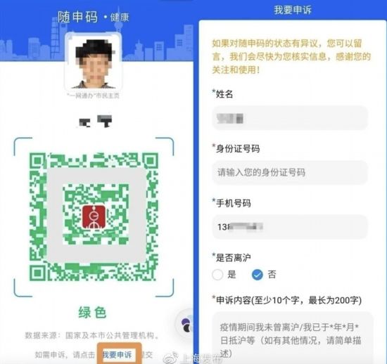 對于未離滬卻為黃碼的情況,原因有幾類:一是本人經過疫區,或者在疫區附近逗留,導致判為黃碼;二是申訴人仍處于健康觀察期間,請耐心等待;三是本人的信息被其他人使用或盜用,其他人的相關行為導致申訴人被判為黃碼。如果市民對結果有疑義,可通過“我要申訴”反饋,上海大數據中心將盡快處理。