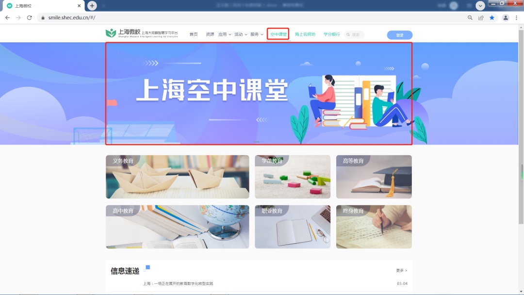 上?罩姓n堂頁面截圖。上海市教委供圖