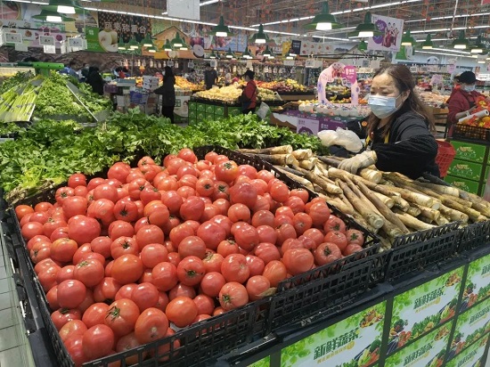 “我們堅持保供應,不漲價。工作人員會及時補貨,滿足市民采購需求!贝鬂櫚l長陽店經理郭儒卿告訴記者,目前,門店可確保米面糧油、蔬菜瓜果貨源充足。綠葉蔬菜一般會囤2天的量,根莖類蔬菜會囤3到4天的量,每天的囤貨量比前段時間多2噸左右。如果發現蔬菜銷售量上升,將會及時與總部聯系增加訂單,以確保供應;肉品部分,每天的進貨量一般能滿足超市2天的銷售量;大米的儲備量達到了60噸,囤貨量較上周提升了不少;速食品方面,方便面、速凍水餃等在門店也庫存充裕,囤貨量大約有300多噸。同時對于不便到店采買的市民,大潤發線上平臺也持續運營穩定供貨,全方位滿足市民線上線下的訂購需求!爸T如速食品、蔬菜、水果、飲用水等日常所需,線上都能購買,以減少接觸!惫迩湔f。