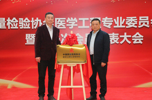新當選的中國質量檢驗協會醫學工程專業委員會執行會長黎元教授和副會長張堅揭牌