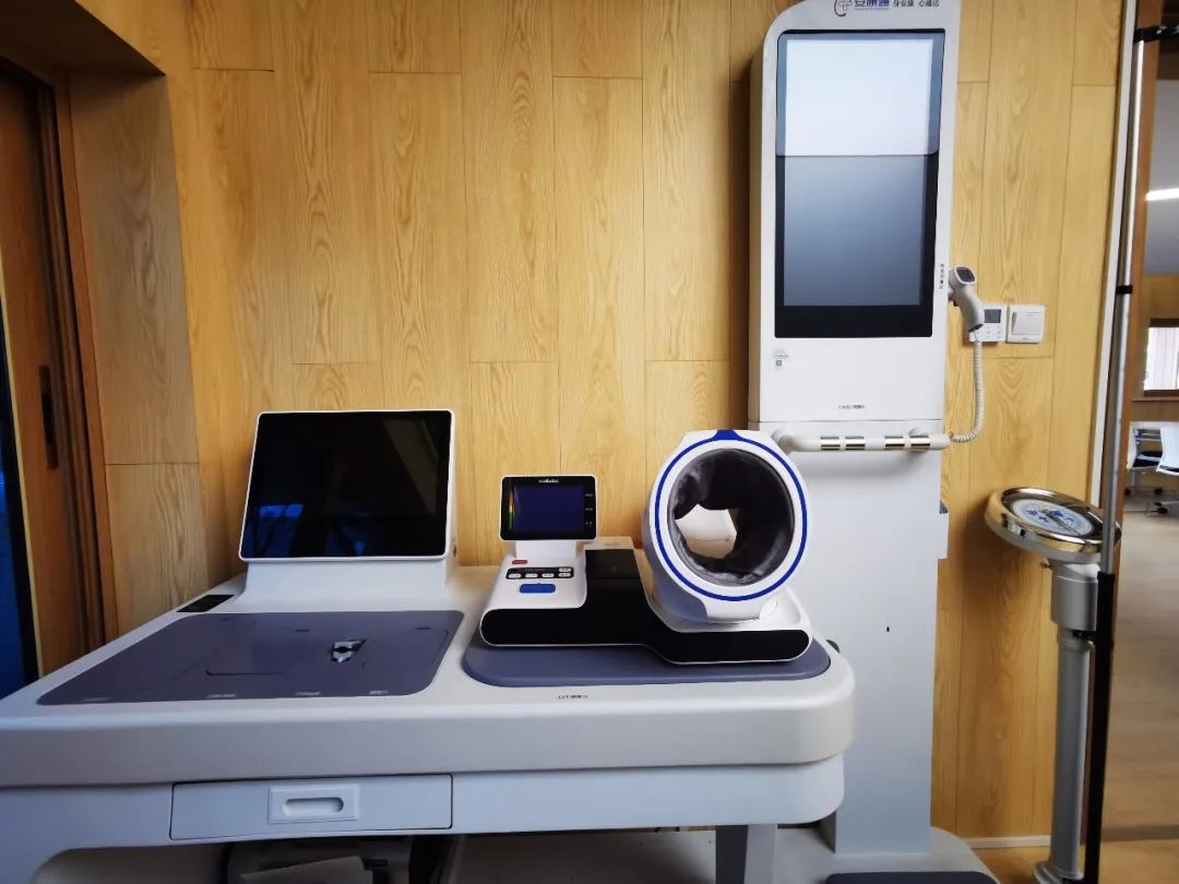 “華院故事”墻旁邊的一間小屋是健康頤養區,這里空間雖小,但是布局溫馨,一側是觀賞庭院玻璃窗,并設有休憩沙發?紤]到華院居民區居民老齡化程度高,健康咨詢服務需求較多,室內設有健康自我觀測一體機,并安排社區醫生定期開展健康咨詢指導。