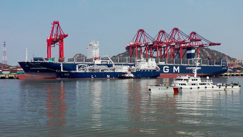 中國首單保稅LNG加注業務在上海洋山港完成。洋山港供圖