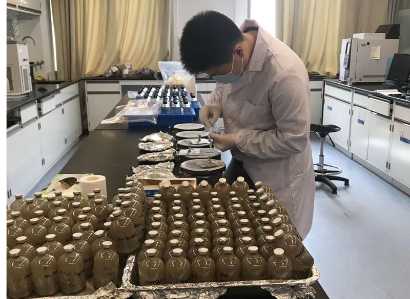 河口海岸學國家重點實驗室博士研究生陳飛揚在做“溫室氣體排放監測實驗”。