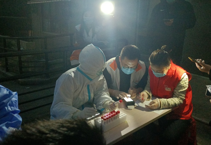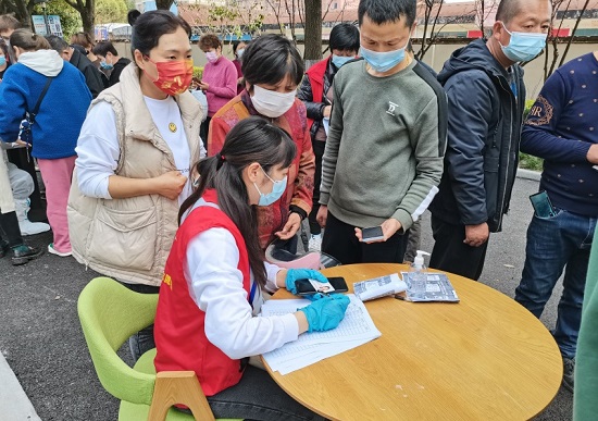 金悅小區里,有好幾個生病的老人,不能下樓。志愿者們一一做好統計,為無法下樓的居民提供上門檢測服務。