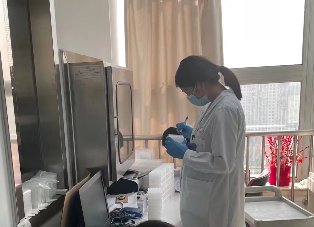 主管檢驗師段玉萍是一位懷孕七個半月的孕媽媽,她主動承擔起外圍工作,力所能及地幫助同事們一起分擔!巴聜儎裎倚菹,我肯定要拒絕的,我也是檢驗科的一份子,和他們并肩戰斗,是我給寶寶最好的胎教!