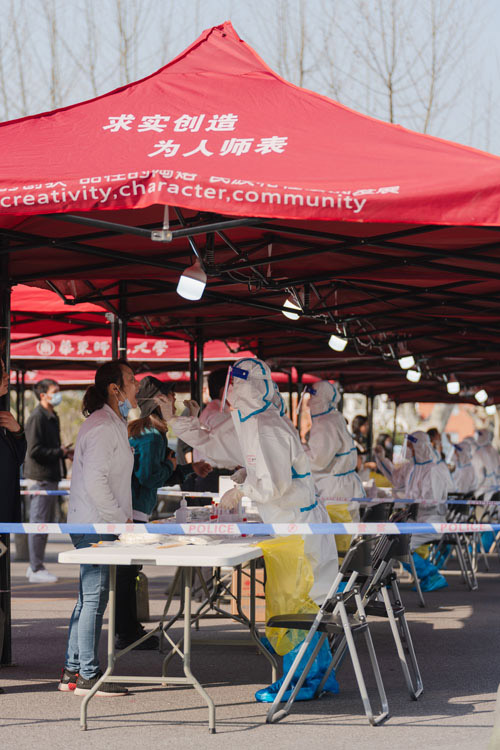 華東師大組織開展師生員工核酸檢測。華東師大供圖