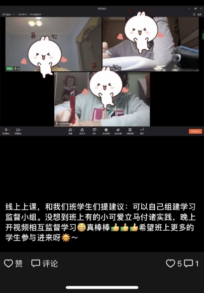 雖然師生們因為疫情相隔甚遠,但通過與學生“連麥”,老師又能走進學生的學習生活中,又能將老師的關心通過網線傳遞給學生。