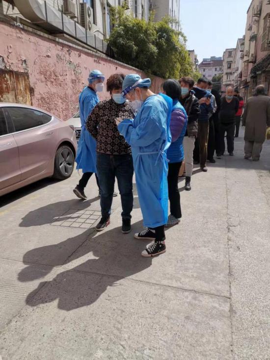 安慶輝幫助隔離小區老人操作手機APP。采訪對象供圖