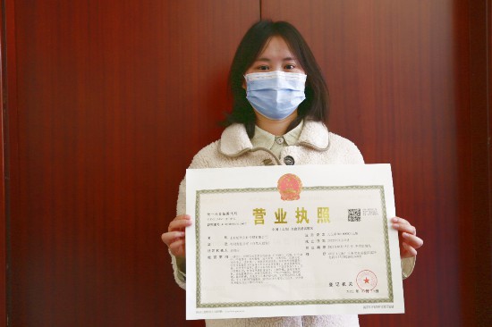 領到新執照的業主很是興奮。(浦東市場監管局供圖)