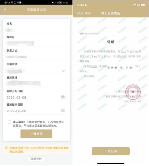 上海:徐匯等七個區可在線開具“居家健康監測證明”