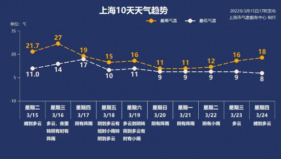 值得關注的是,這波夏日體驗也就曇花一現,一股冷空氣已經啟程。在冷暖空氣的配合下,中東部地區明起將迎來一次較強降水過程。北方將現斷崖式降溫。明(16日)夜起,上海也將陸續出現降水降溫,晴暖天氣被扭轉。3月17日全天都維持陰有陣雨,雨勢明顯。氣溫不算低,全天17-19℃,體感較為暖濕。