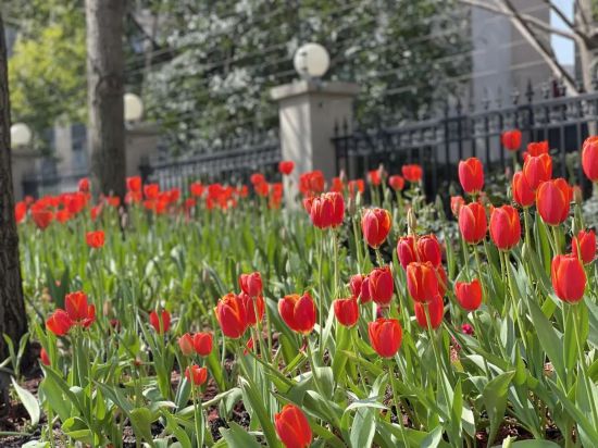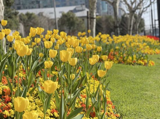 上海最近的天氣回暖了不少,這也讓不少鮮花搶著報春。在徐匯漕溪北路、田林東路、康平路、徐家匯等區域,一不小心就和郁金香一起跌入春天的溫柔,閃爍著春天最絢麗的那抹秀美。