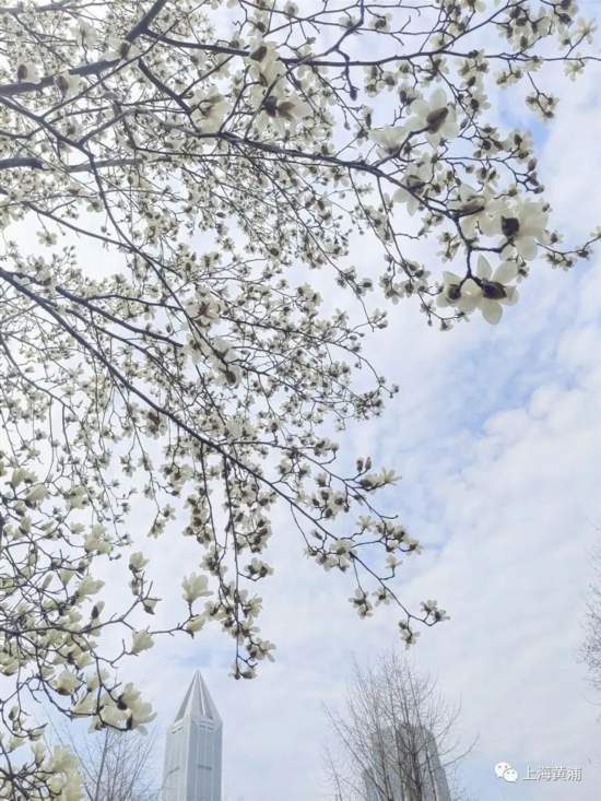 在長寧的公園里、小區里甚至街角路口,都植有白玉蘭樹。你看,那花潤如玉,花香似蘭,潔白的花朵綴于枝頭,在陽光的照耀下熠熠奪目。