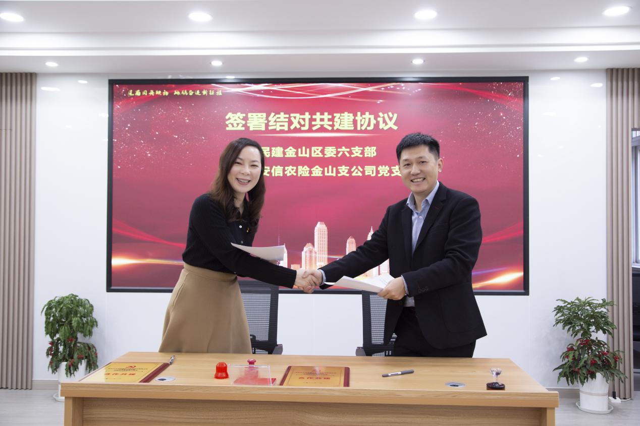 除了豐富多彩的線上活動外,線下活動也不容錯過。日前,太平洋安信農險金山黨支部與民建金山區委第六支部舉辦結對共建簽約儀式。雙方簽署結對共建協議,并互贈合作共建牌匾。