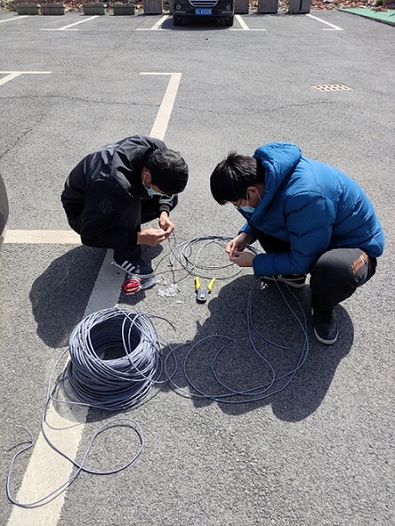 在徹夜的緊急安裝過程中,團隊不斷摸索各種方法來提升效率!耙驗槲飿I里電工人數少,電源接通的速度慢于我們寬帶線路接通的速度。我們就使用充電寶和逆變器,進行升壓,臨時開通現場設備,等電接通后,再正式進行設備上電,很快就可以正常使用!辈芸∪A說道。