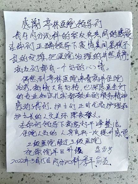 金山這家醫院閉環管理期間,收到了三封信,他們說...