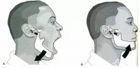 因下頜關節囊前側壁無韌帶加強,比較薄弱,下頜關節突可經前壁向前滑脫到顳頜關節窩的前方而脫位。顳下頜關節脫位是指髁突滑出關節窩以外,超越了關節運動的正常限度,以致不能自行復回原位。