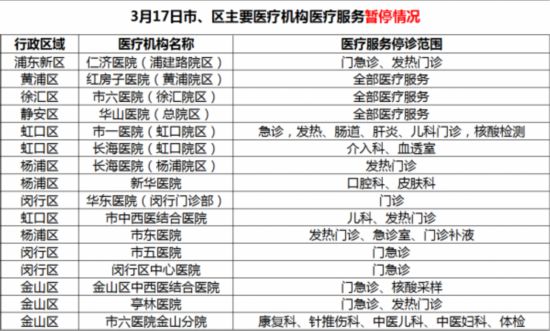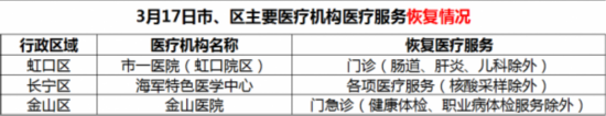 原標題:3月17日上海市、區主要醫療機構醫療服務暫停與恢復情況