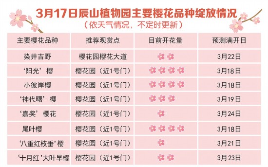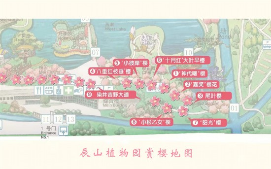 推薦觀賞點:辰山官微“云賞櫻”頻道、櫻花大道、櫻花園(近1號門)