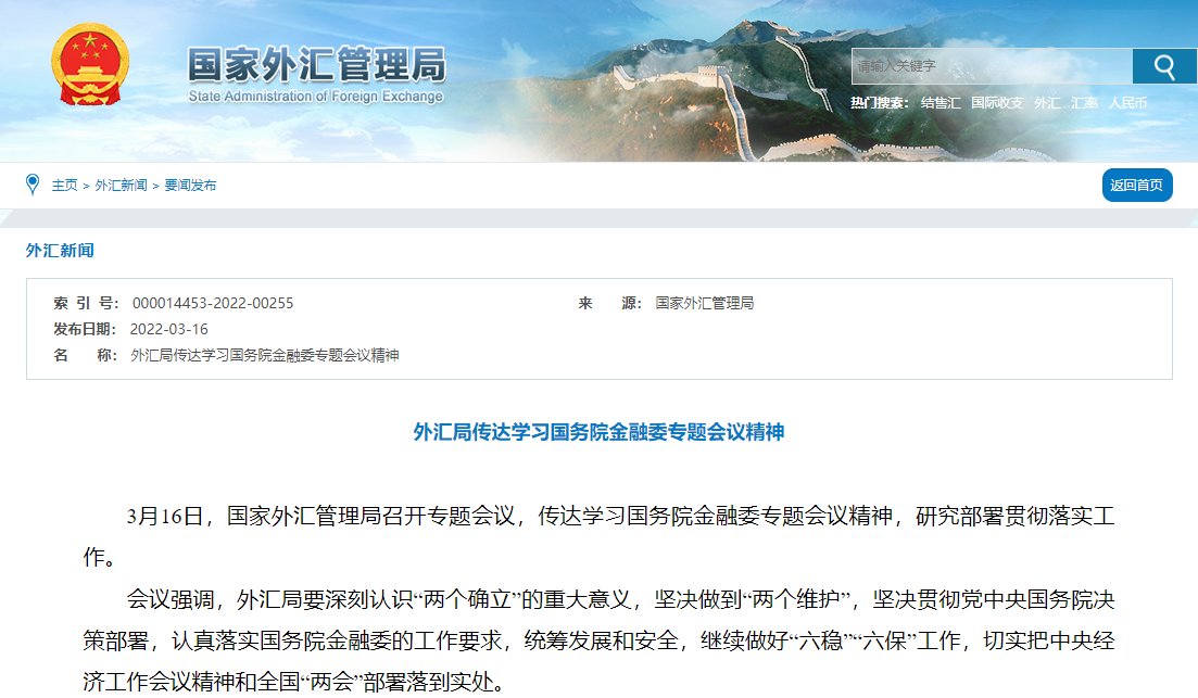 國家外匯管理局官網截圖。