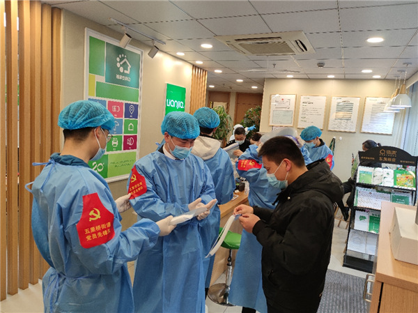 鏈家徐匯中心店的商圈經理徐健康也是接到居委的招募通知后,第一時間在門店發起了召集,盡管大家都知道幫忙做核酸采集指引工作有一定的風險,但無一人退縮,放下工作第一時間奔赴現場,前前后后門店出動了17個人!澳軐嶋H幫助到居民,我們做的一切就都是值得的!”