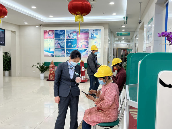 浦東北蔡鎮有一位87歲的老奶奶忘記了銀行卡密碼,無法及時支付手術費用,正焦急萬分時,農行浦東北蔡支行得知情況后,第一時間開展上門服務。在做好充分防疫措施基礎上,安排專人上門幫助老奶奶完成銀行卡密碼掛失重置,及時繳納手術費用。3月16日,農行靜安支行了解到附近工地急需為一批工人開立借記卡發放工資后,第一時間研究制定特殊時期接待方案,在確認工人們核酸檢測報告、健康碼和體溫測量正常后,分批次安排工人們進入網點,通過分散距離逐一為工人們辦理開卡業務。當天共計為56名工人開立銀行卡并指導使用掌上銀行,幫助工人們順利拿到工資并通過手機線上查看到賬情況。