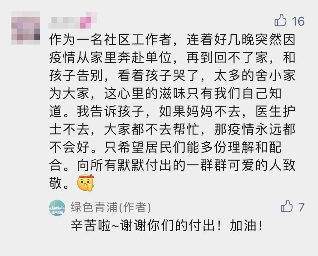 很多朋友的留言一次次感動著小青果,大家的理解、支持、配合都展示著青浦這座城的溫暖與美好。我們,都是好樣的!
