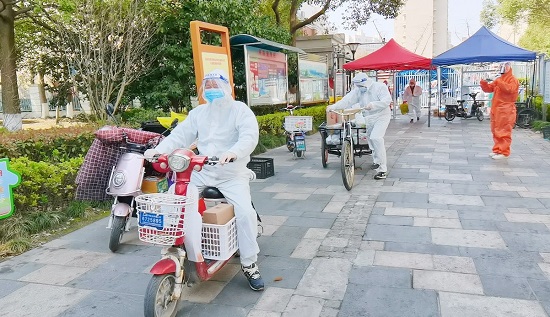 山陽一封控居民區百名志愿者化身快遞員配送物資
