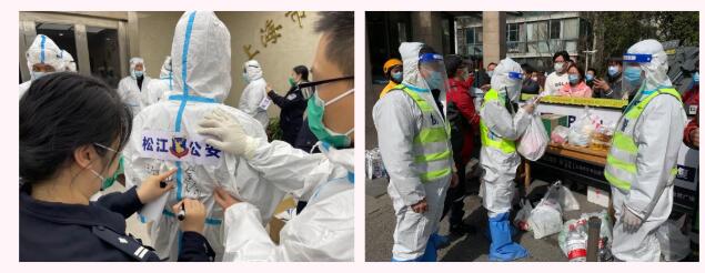 本輪疫情以來,松江近5000名居村“兩委”班子成員、條線干部、社區工作者,數萬名整合下沉到社區的機關企事業、社會愛心人士、普通黨員群眾等志愿力量,無數保安、協警、協管、物業、保潔等一線工作人員,與社區生活息息相關的外賣員、快遞員、網約車司機等社會力量,大家各司其職、無縫聯動、即時聯通、有序運轉,點點微光匯聚成抗擊疫情的強大力量,共同溫暖著松江的夜。