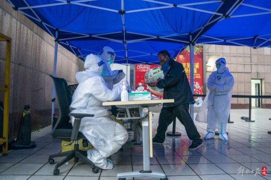 大風降溫,工作人員各司其職,小區居民積極配合,上海社區核酸采樣平穩有序
