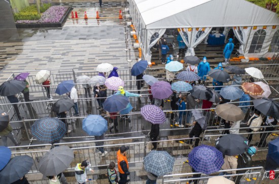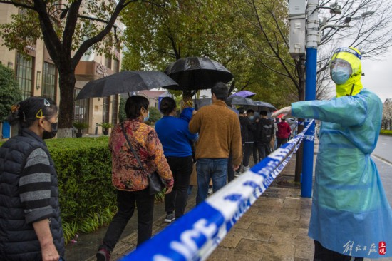 2022年3月17日,是上海部分社區開展核酸篩查第二輪核酸采樣的日子,當天連續降雨并伴有大風降溫,相關工作人員在寒風中堅守崗位,核酸檢測工作井然有序。