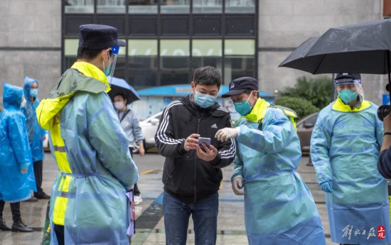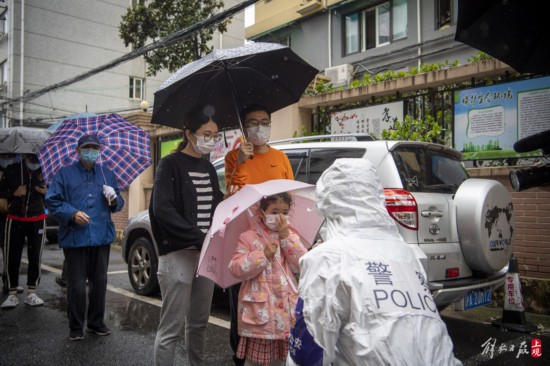 黃浦公安分局小東門派出所民警和街道社區工作人員在現場維護秩序,提醒排隊居民戴好口罩,有序排隊,注意一米間距。居民可以直接掃碼登記后進行核酸檢測,小區內的居民將在該點完成兩輪核酸篩查,截至當日12時已核酸取樣1000余人。