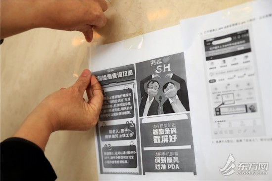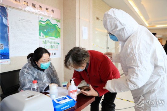 警戒線拉起,物業在大門口張貼了告居民書,居委會的大喇叭循環播放48小時網格化排查管理的通知。志愿者早早站在門口解答居民們的各種疑問,碰到老年人用不來健康云、隨申辦的,志愿者會幫忙操作預約登記。