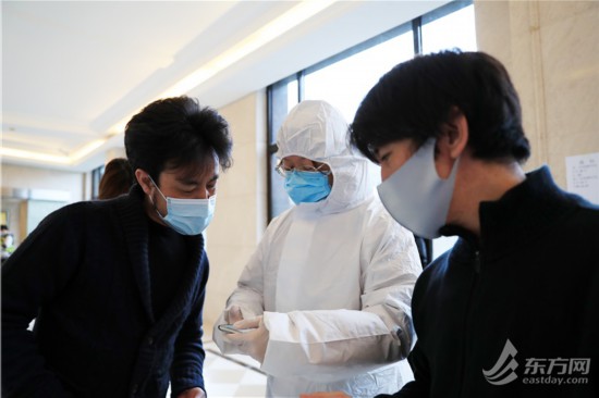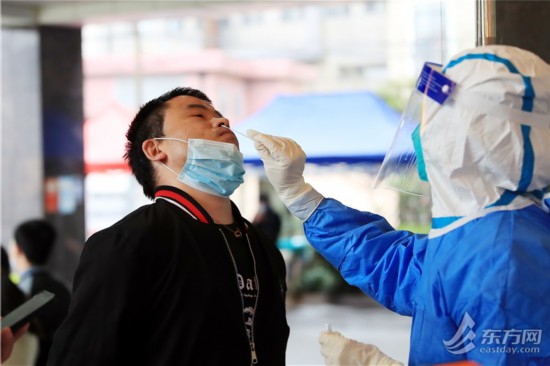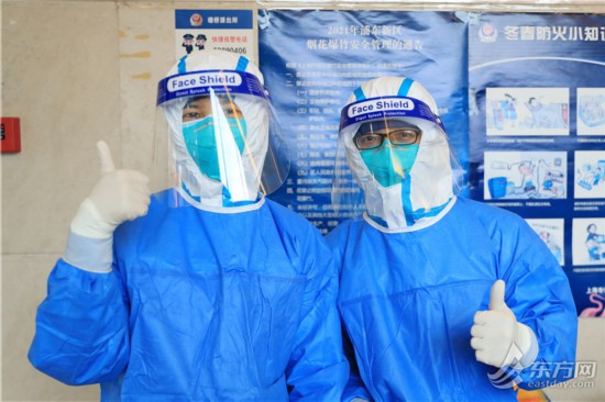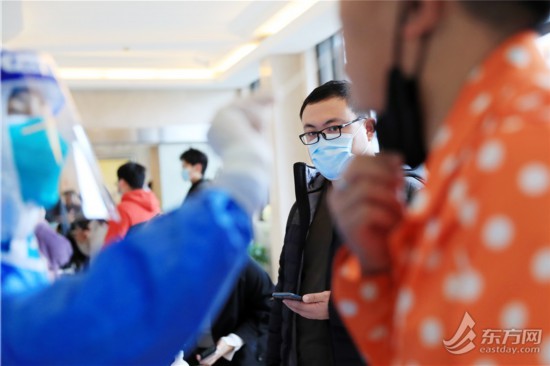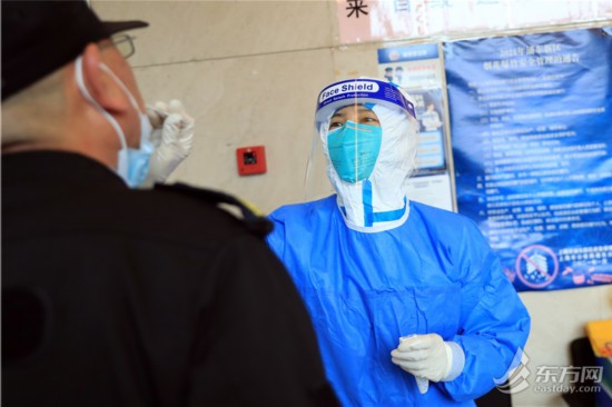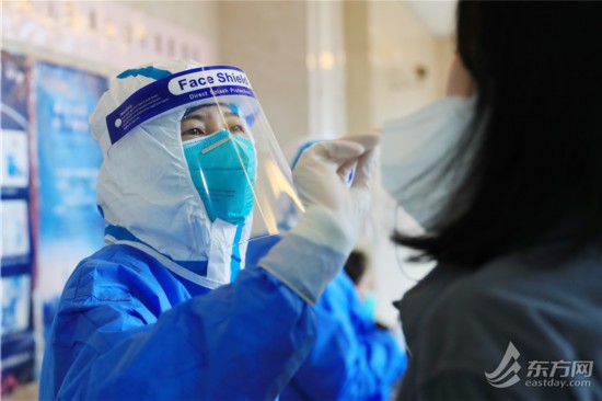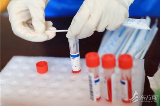 負責核酸檢測的兩位大白同樣忙不停,未來48小時,他們將駐守在這個小小的桌子前,重復上百次一樣的動作。難得的空隙,記者為他倆拍了一張工作照,兩位大白豎起大拇指;Q微信后,記者這才發現原來戳大家鼻孔的是東方醫院膽石科醫護人員,若在平時要掛上這些專家的號還真不容易。