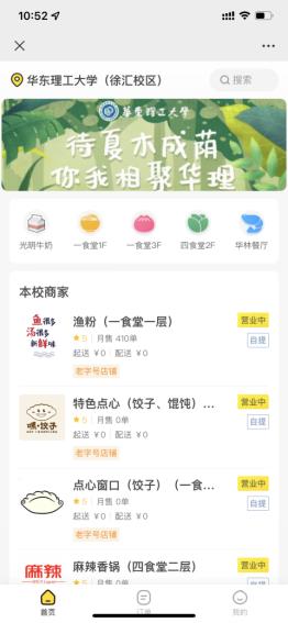 經過后勤保障處的協調,在華理2007屆校友、俺來也網絡科技有限公司總裁孫紹瑞的大力支持下,借助于專注校園外賣的“俺來也”云餐廳技術優勢,徐匯校區食堂外賣“云訂餐”服務于3月15日晚上線試運行。