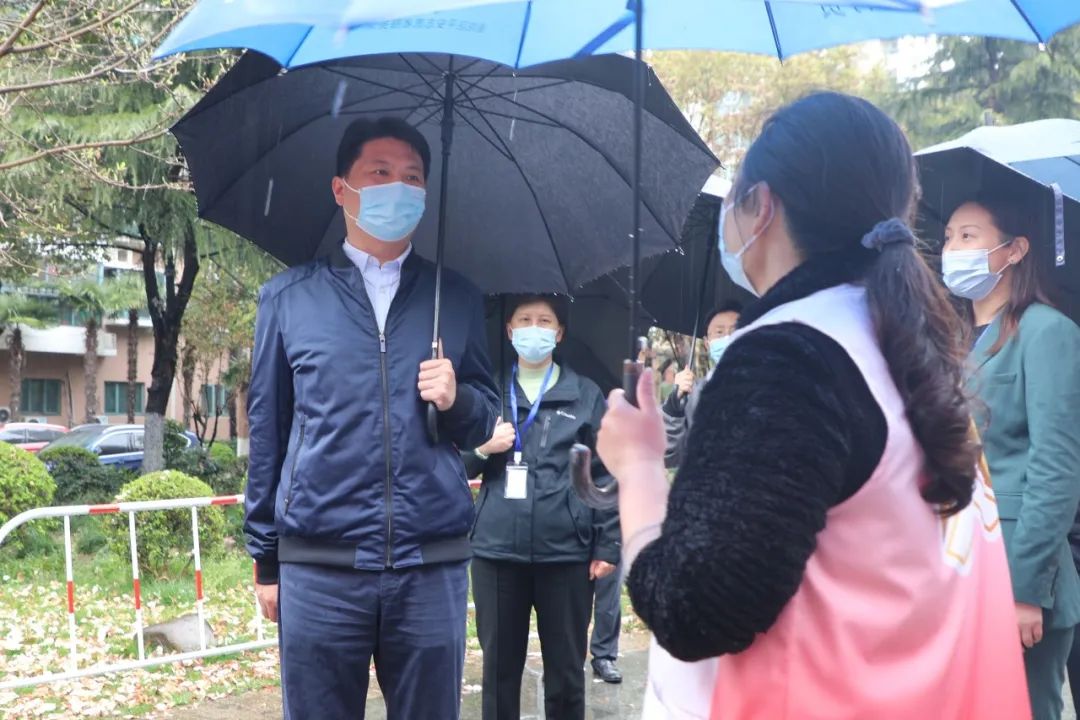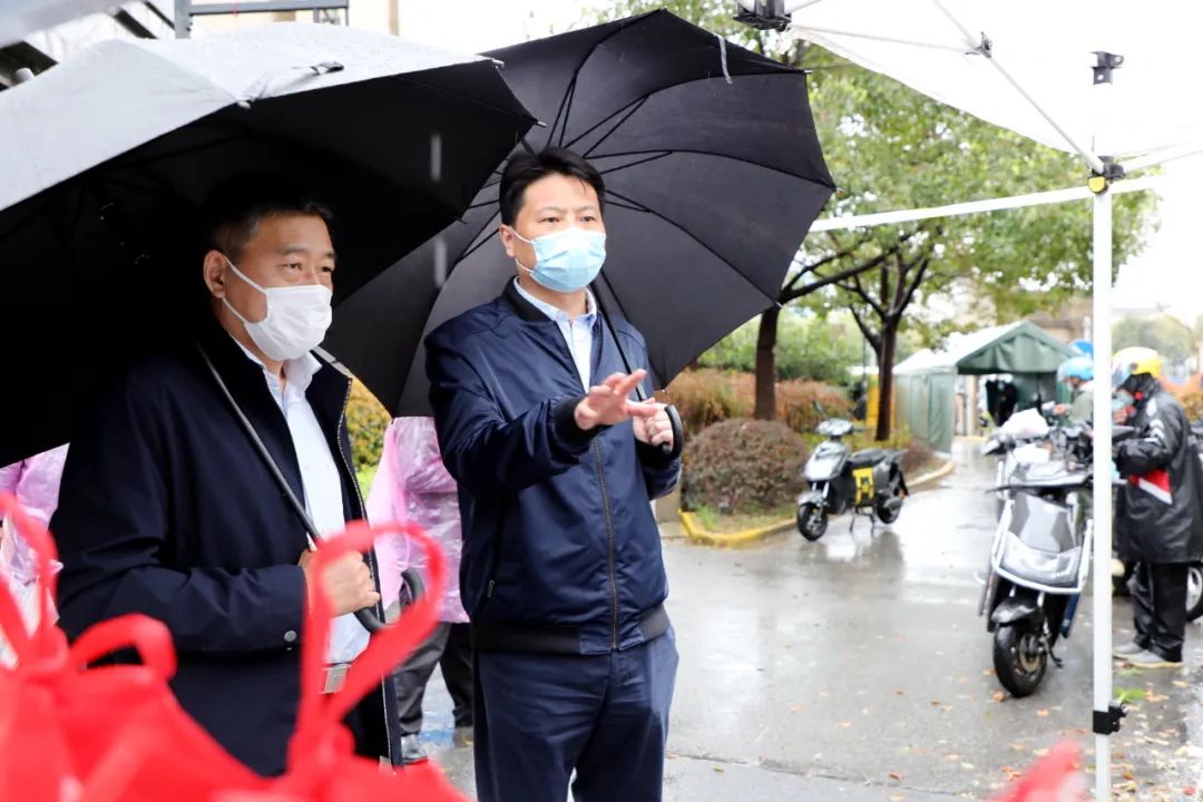 “目前這個監測點采樣有多少份?是否還有居民沒有通知到位?”姜冬冬走進馨越公寓社區,一邊察看各個檢測點運行、現場秩序管理等情況,一邊詳細詢問核酸檢測工作進展、后勤保障服務等具體情況?吹缴鐓^居民正在冒雨有序排隊接受核酸檢測,姜冬冬對駐守的街鎮干部說,“今天下雨,又逢降溫,要及時提醒來檢測的居民防寒保暖!