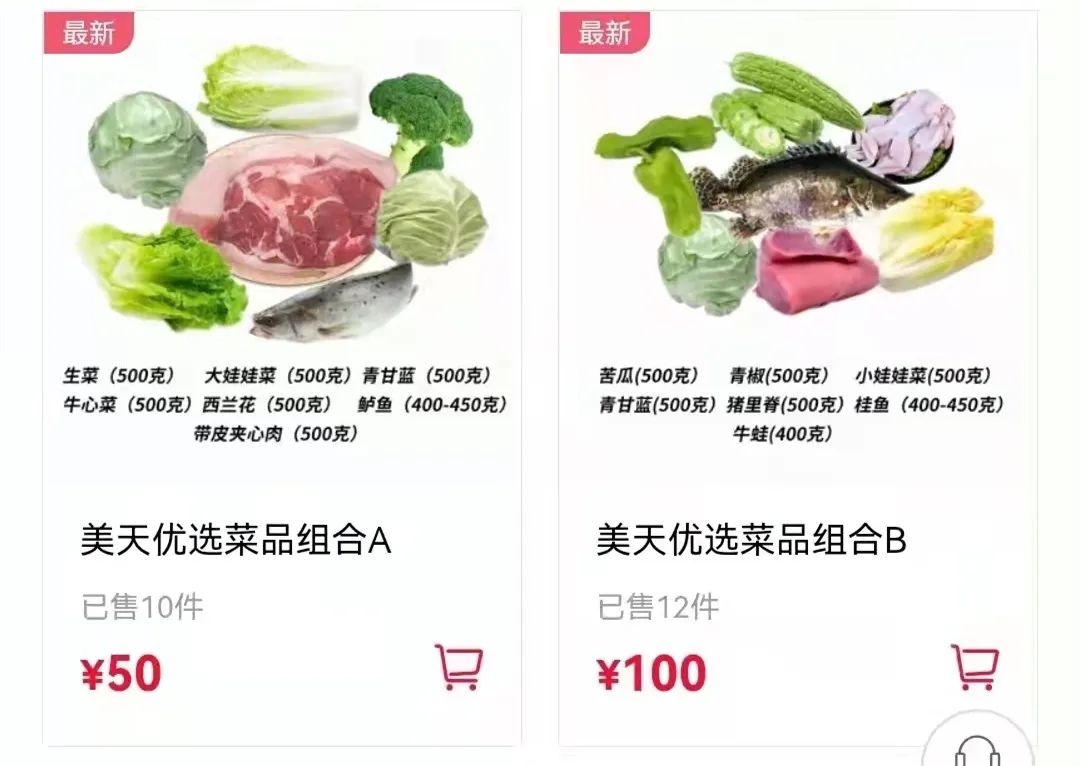 記者從美天副食品公司獲悉,考慮到居民居家期間一日三餐的營養均衡,美天精心搭配了50元、100元兩種平價套餐,包含蔬菜、肉類、魚鮮,可滿足3口之家1-2日所需。不僅如此,套餐每天都會更換菜單,為居民換上不同口味。