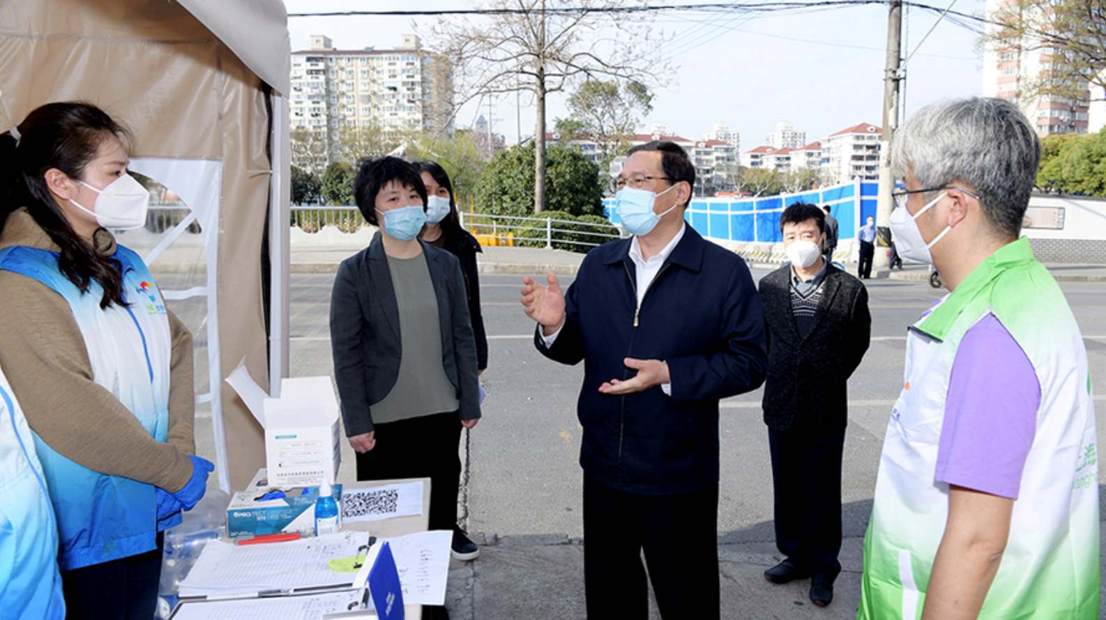 3月15日,李強分別前往浦東新區的臨時核酸檢測點、虹口區的封控小區,檢查疫情防控和應急處置工作,看望慰問持續奮戰在抗疫一線的工作人員。