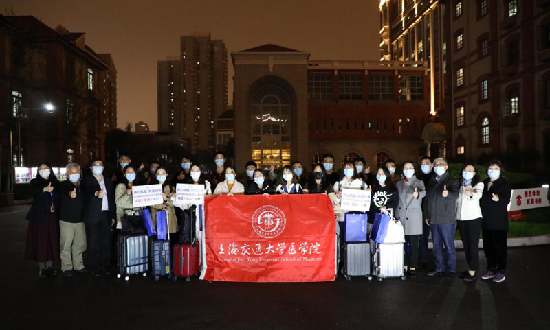 人民網上海3月19日電 (唐小麗)3月18日晚,上海交大醫學院一支20人核酸檢測工作志愿者隊伍連夜出發,支援進駐寶山區的上海蘭衛醫學檢驗所,開啟緊張、忙碌而又充滿挑戰的檢測工作。出征前,上海交大醫學院黨委書記江帆、副院長胡翊群、吳正一等為出征隊伍送行。中國工程院院士、交大醫學院院長范先群參加線上動員會,預祝出征的交醫學子凱旋歸來。