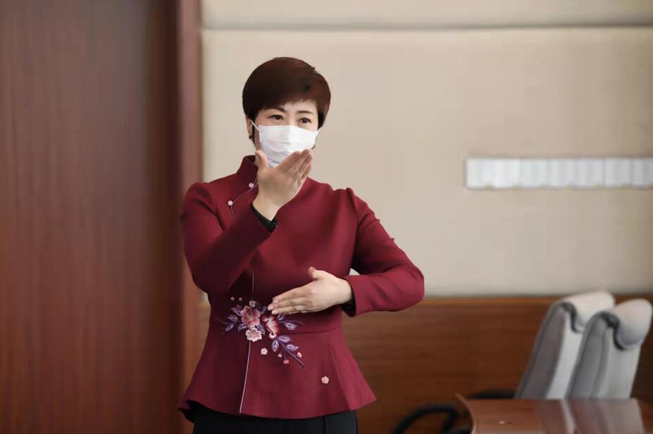 “手語是健全人和聾人溝通的橋梁!睆氖率终Z翻譯工作20多年,葛玉紅認為,手語在表達的時候,表情非常重要,但由于疫情原因,需要戴口罩,那我們在翻譯的時候,就更要結合眼神,手勢動作的力度,甚至體態來表情達意。盡可能翻譯的通俗易懂。正常情況下,還需要口型配合,使手語表達更準確。