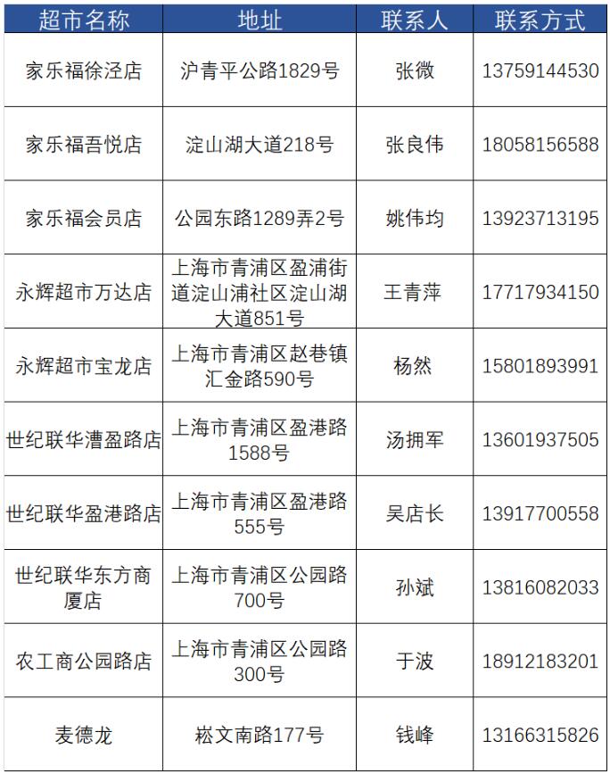 ▲青浦區主要超市聯系方式