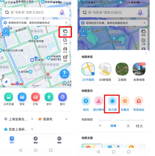 百度地圖升級推出疫情“出行信息速報”服務,為廣大上海市民提供包含官方核酸檢測網點信息在內的最新疫情防控動態。此外,用戶還可以通過百度地圖熱力圖模式,直觀了解各核酸檢測網點的人流密集度情況,合理安排時間或更換檢測機構。