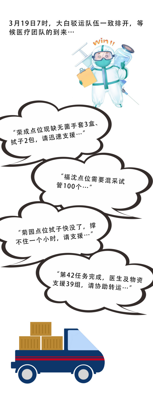 前方是醫療一線的訴求,后方是駁運點位的22名同志,“3號接單、15號接單、21號接單…”他們,有命必復,使命必達。