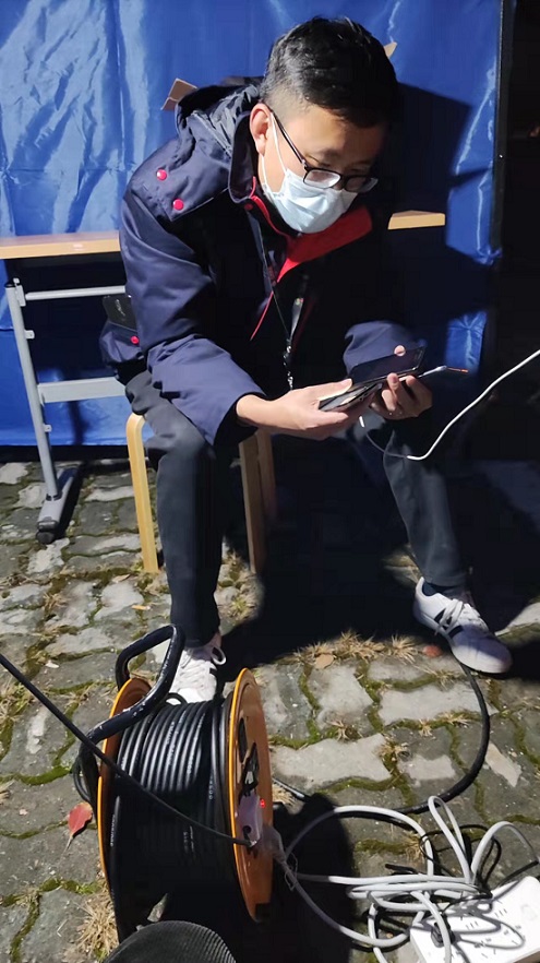 從清晨到晚上、從深夜到黎明、他們不辭辛勞,風餐露宿,一次次的調試設備,累了就找個角落或是在自己的車上小憩一會,然后繼續投入到工作中。