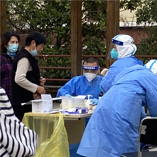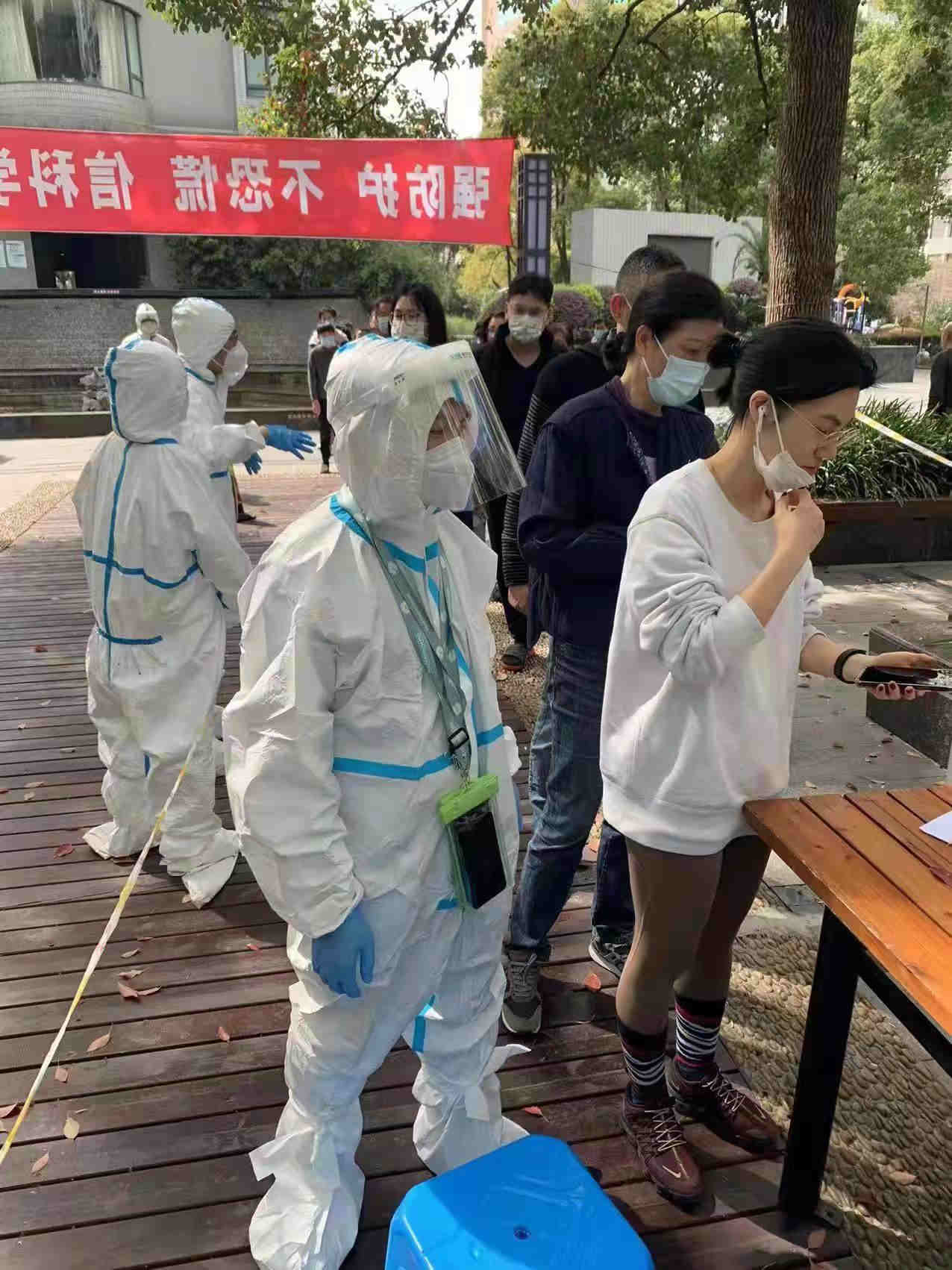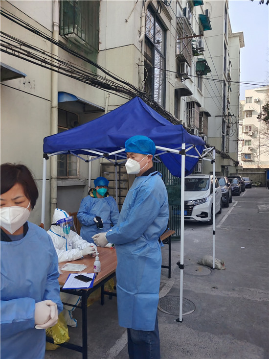 大寧路街道參與核酸采樣工作的人手嚴重不足,所在街道司法所陳亮說,“讓我去吧,我父母都是警察,我也是警察,我決不會給人民警察丟臉!蹦睦镉行枰,哪里就能看到戒毒民警的身影。3月16日以來,共和新路司法所張疏桐連續忙碌在核酸檢測現場,確保了現場秩序良好、核酸檢測工作高效完成。他說,“雖然有些累,但是能夠參與一線抗疫,很值得!