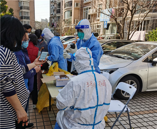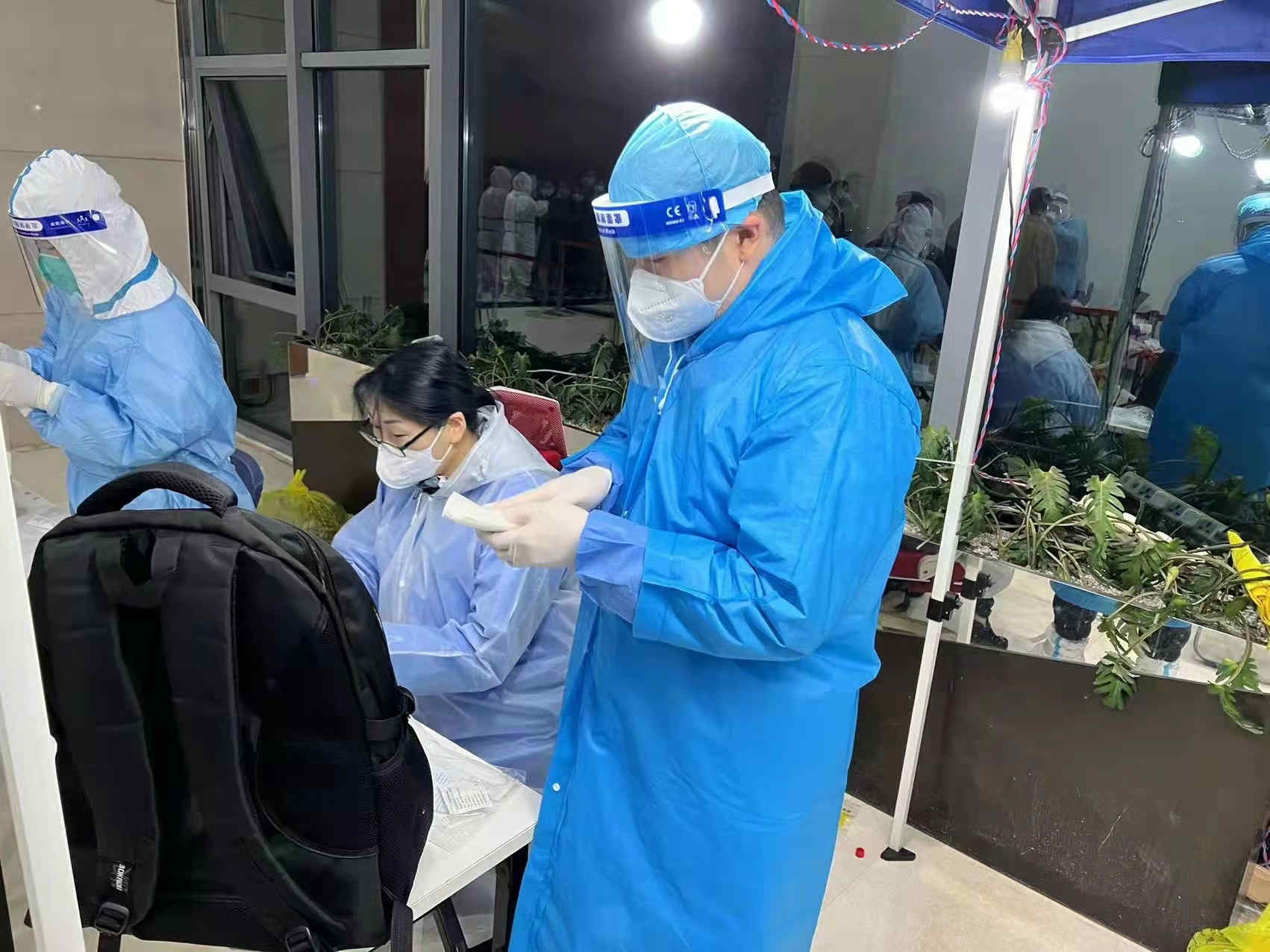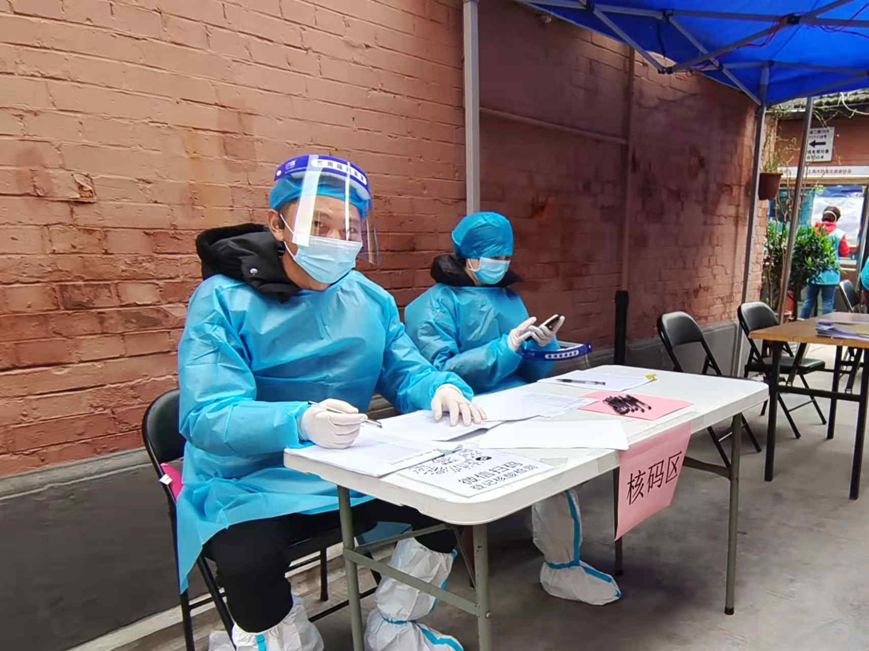 3月18日,趕上降溫下雨,居民撐著傘來登記,雨水將登記簿都印濕了,她協助設計排隊線路,細致做好登記核查,2天整整48小時“白+黑”不停息工作,篩查了近1200多份核酸。她用行動兌現“一名黨員一面旗”服務百姓的承諾。