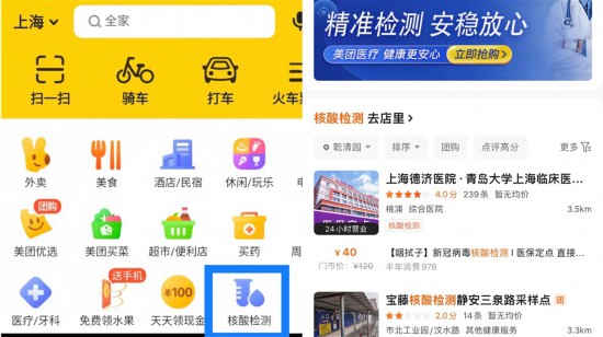 為滿足上海市民快速預約、就近檢測需求,一些互聯網平臺陸續推出更便捷的核酸檢測搜索和預約等功能,共同助力上?挂。記者注意到,3月19日起,市民打開美團App點擊“核酸檢測”按鈕,或搜索“核酸檢測”字樣,即可快速查獲周邊最新核酸檢測點位置信息和預約信息。